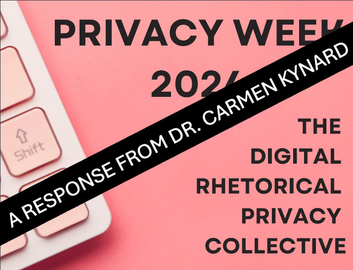On Friday, February 16, 2024, DRPC GAR Michele Hearn, from Texas A&M University-Commerce, interviewed Dr. Carmen Kynard, from Texas Christian University, who offered a response to DRPC Privacy Week. In the interview, Dr. Kynard shares her opinion on why there is an interest among folks about learning about what ethical digital privacy looks like and imagines new projects, collaborations, and research trajectories for scholars studying privacy and surveillance in rhetoric and composition following DRPC Privacy Week.